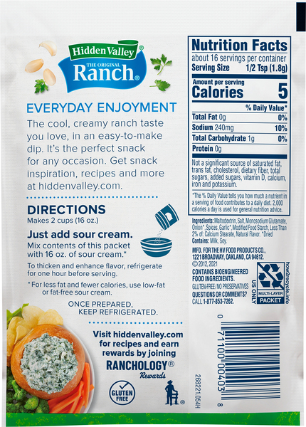 Hidden Valley Dips Mix The Original Ranch 1 Oz Pkt Giant