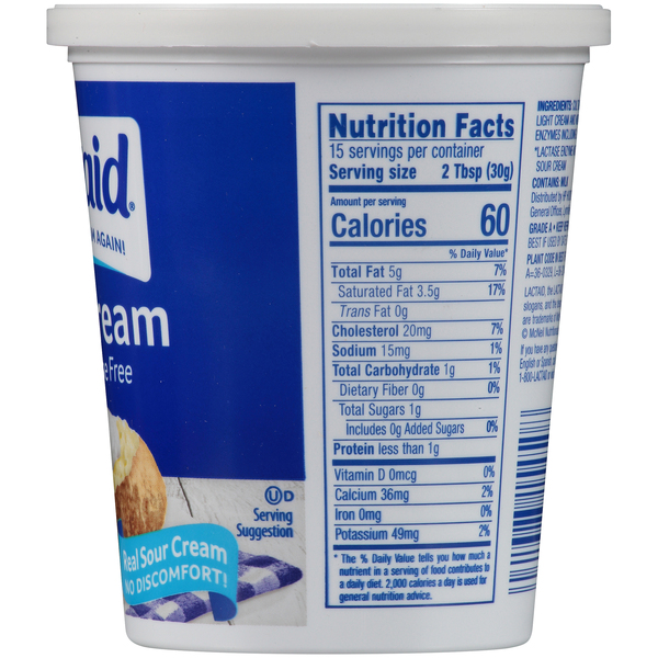 Lactaid Sour Cream 100 Lactose Free 16 Oz Pkg Giant